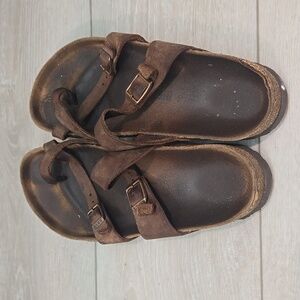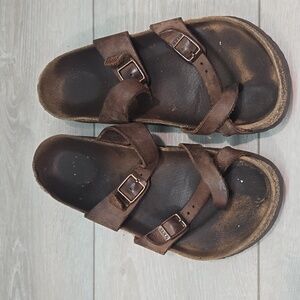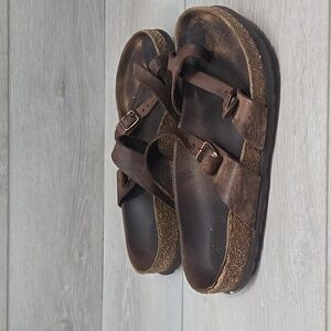 Birkenstock Women Mayari Loop Toe Brown Leather Sandals Shoes Sz 38/7 Regular