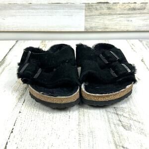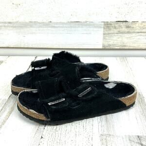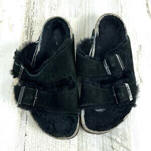 Birkenstock Women’s 6.5 Black Suede Shearling Fur Lined Slip-ON Buckle Sandals