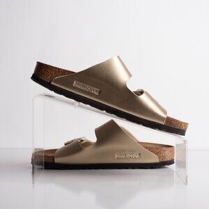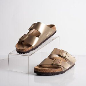 Birkenstock Womens Arizona Sandals Slip On Slides Gold US 6 EU 37 narrow NWB