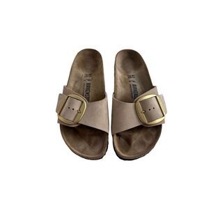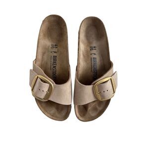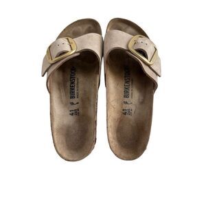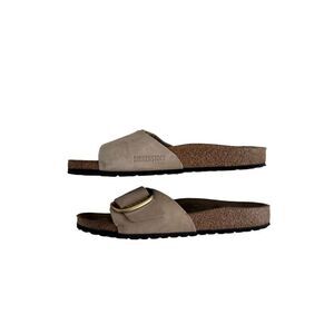 Birkenstock Womens Brown Suede Leather Open Toe Big Buckle Slide Sandals Size 41