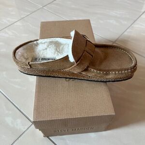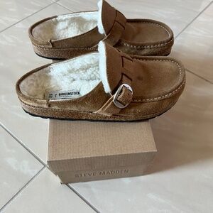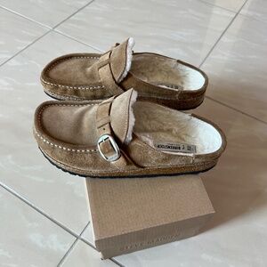Birkenstock Women's Buckley Braun Dark Tea Shearling Suede Leather size 39