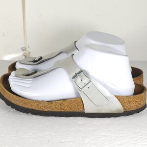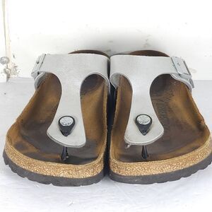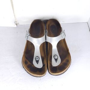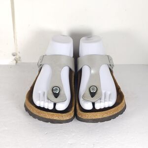Birkenstock Women's Gizeh EU38 US7 Silver Birko-Flor T-strap Thong Sandals .