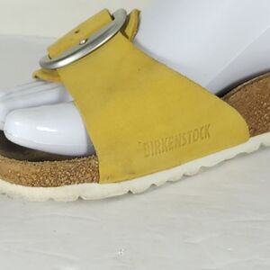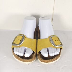 Birkenstock Women's Madrid Big Buckle EU 38 US 7 Yellow Nubuck Slide Sandals