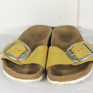 Birkenstock Women's Madrid Big Buckle EU 38 US 7 popcorn Yellow Nubuck Leather Slide Sandals.