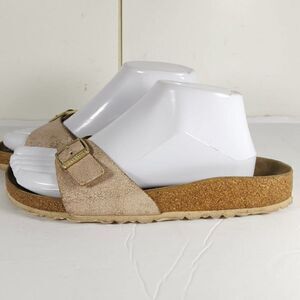 Elevate your summer footwear collection with these Birkenstock Women's Madrid Slide Sandals. These shoes feature a light pink color and a buckle closure for a secure and adjustable fit. The Birko-Flor upper material is complemented with a cork insole for added comfort, while the rubber outsole provides traction for all-day wear. These sandals are perfect for travel, casual outings, and activewear. The Gizeh model is a slide style with straps and accents that make them fashionable and colorful. Available in EU size 38 and US size 7, these sandals are a must-have addition to any wardrobe.