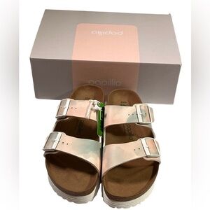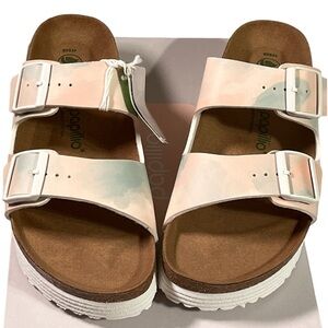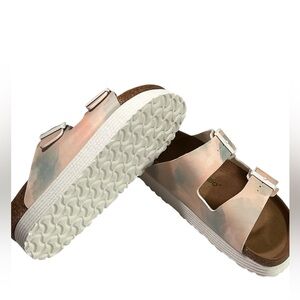 Stylish Birkenstock sandals. Comfortable footbed. Adjustable straps.
