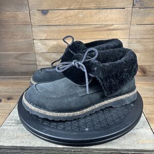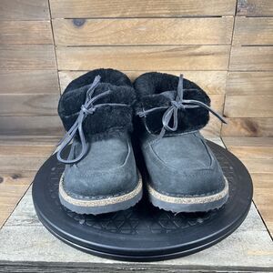 Birkenstock Womens Size 6 Bakki Black Suede Chukka Comfort Fur Lace Up Shoes