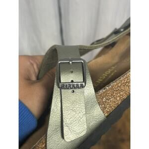 Birkenstock Women's Sz 37 W 6 M 4 Gizeh Green Leather Thong Slip On Sandals