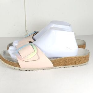 Birkenstock Women's Madrid Big Buckle EU41 regular fit US10 natural Leather Light Pink rainbow Slide Sandals.