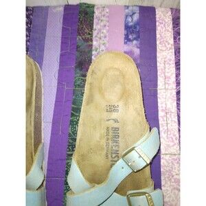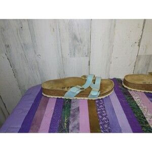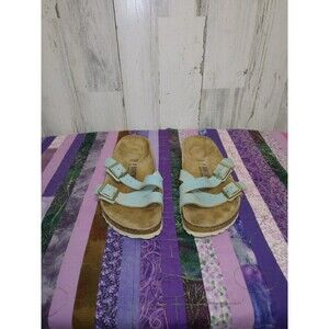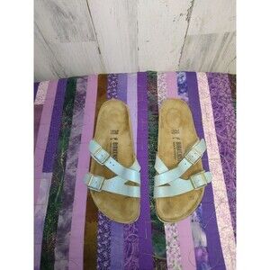 Birkenstock Yao Balance Washed Metallic Aquamarine Leather Sandals Sz 38 / US 7