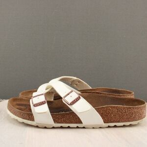 Birkenstock Yao Sandals Womans 40 (US 9) White Leather Strappy Slide Birko-Flor