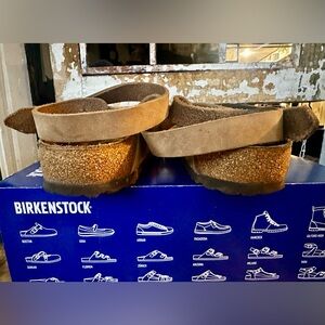 Elevate your summer style with these authentic Birkenstock Yara sandals. Featuring the classic comfort of a contoured cork footbed, with an elegant crisscross toe strap and adjustable ankle wrap for a secure fit. Crafted in supple tobacco brown suede leather, these are both chic and supportive.