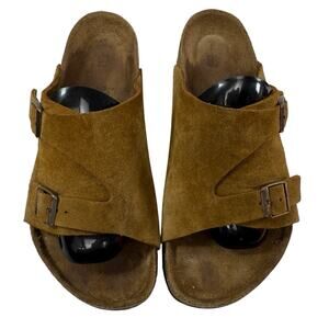 Birkenstock Zurich Suede Leather Slide Sandals Mink Men Size 43 US 10 Regular/Wide in Very Good pre-owned condition. Light wear on the upper and sole. There are light marks, scratches, scuffs and creases from use.