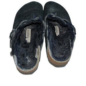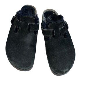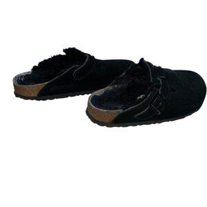 Birkenstock black boston nubuck suede shearling fur shoes 38 8