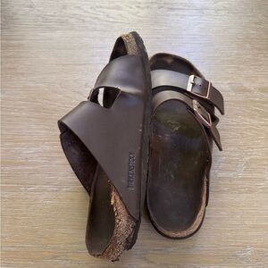 Birkenstock brown leather buckle women’s slip on slides sandals shoes size 10.5
