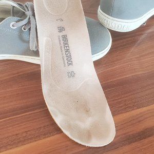 Rare model not produced anymore, very slightly used, no issues. This particular model is a 42 narrow but runs small, more like a 41 or even a 40. Women that wear a 10.5 up to the lower end of an 11 will fit. My usual size in birkenstock is 41 and these are just too small for me. Hope that helps. Grey blue color, removable footbed.