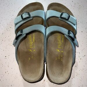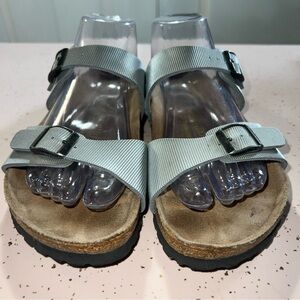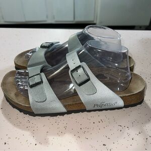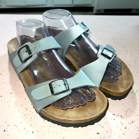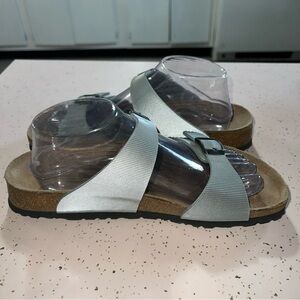 Birkenstock papillio metallic Line Pattern silver 260 sandals Women’s Sz 9