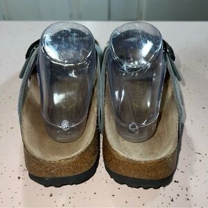 The Birkenstock Arizona model features a classic design with a twist lock closure. These sandals are a women's size 9 (UK 7, EU 40). They are part of the Birkenstock Papillio product line, which is known for its high-quality and stylish sandals. Add a touch of metal to your outfit with these beautiful sandals, perfect for any occasion.