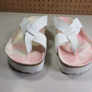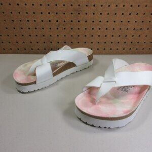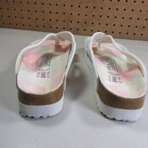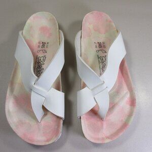 Birkenstock womens white pink Floral Birkis Hawaiian loop toe sandals 7 M