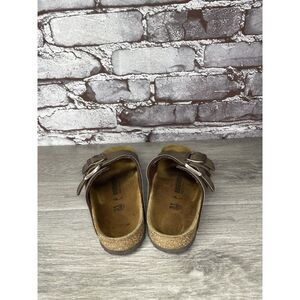 Selling Birkenstock Arizona Mocha Brown Nubuck Leather Copper 2 Strap Slide Sandals Kids Sz 31EU/13M US