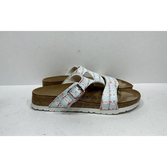 (I5) Birkenstock Birkis Anchor Print Sandals Slides Womens Size 7 N Nautical Coastal