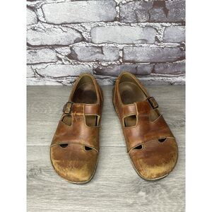 Selling Birkenstock Clog Brown Leather Buckle Strap Clogs Fisherman Sandal Shoes Women Sz 38EU/7.5M US