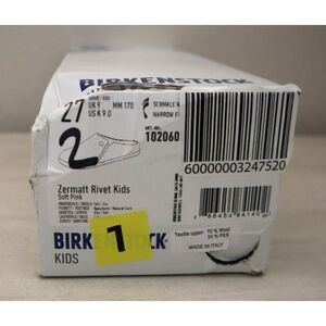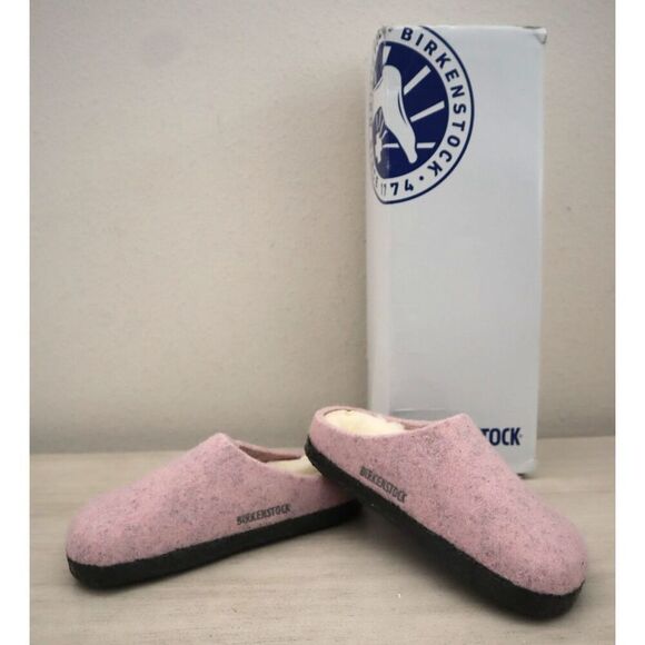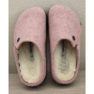 Birkenstock Kids Girls Sz 9 Soft Pink Zermatt Rivet Shearling/Wool Clog Slippers