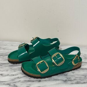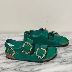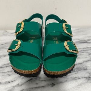 Birkenstock Milano Green Sandals with Gold Buckles Sz 39