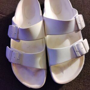 Birkenstock White Sandals with Adjustable Straps and Contoured Footbed