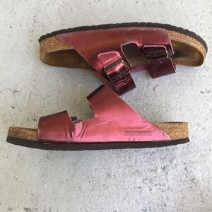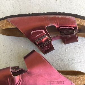 These are a dark rose color with a metallic finish. Please look at the pictures they have where on the outside side, soles are very good.
