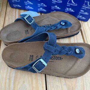 Never worn - still has tags on in box. Gizeh Braided Birkenstocks.