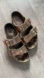Stylish Birkenstocks featuring metallic copper pattern. Adjustable buckle straps for a comfortable fit. Come as is. Everything intact and nothing broken