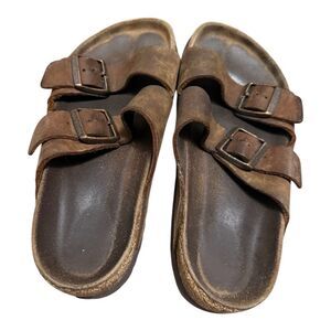 Birkentstock Arizona Saddle Brown Leather Sandals Women's Size: wore off Fits 9