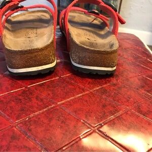 Birkis Birkenstock Sandals Womens L6 Very Gentle Used with red straps