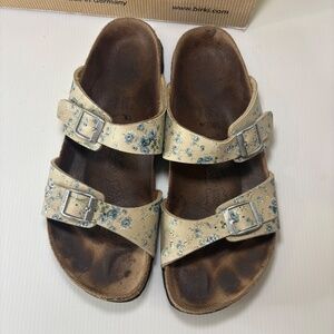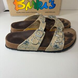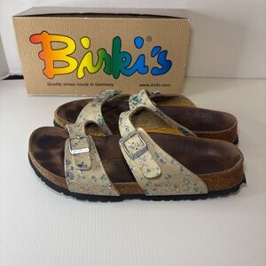 Birkis Birkenstock Womens Michele Slide Sandals Blue Flower Garden Sz 10 w/Box
