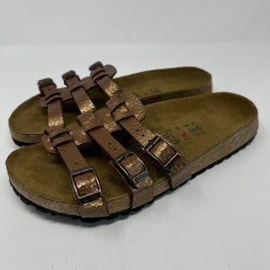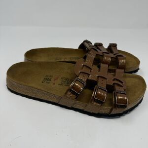 Birki’s By Birkenstock XENIA Bronze Birko Flor Slides EU 38 US 7
