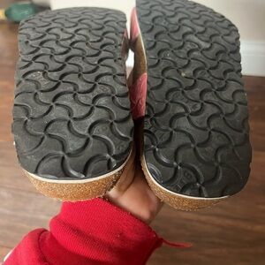 Gently used and in great/excellent condition! These Birkis are a Euro size 39 and US size 8. The rubber soul does not show much if any sign of wear. The color pattern is a textured pinkish coral kind of coral color. Any product made by Birkenstock will guarantee a comfortable long lasting fit and shoe. That is my opinion. All of my items are well cared for and come from a smoke free home.