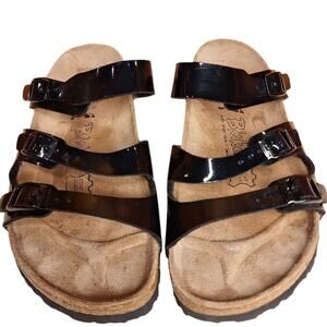 Birkis by birkenstock Birko-Flor 3 strap patent leather slip on sandals US 8.5