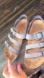 Excellent hardly worn condition. Slate blue color which looks lighter in pictures. Black buckles. 3 straps and a sling back strap around the heels. Cork footbed. Very very nice! Women or man