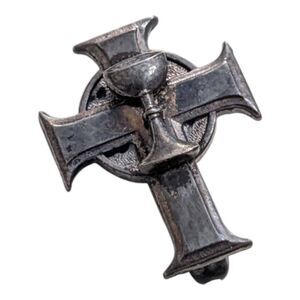 Birks Sterling Silver Cross with Chalice Pin Brooch In Box First Communion