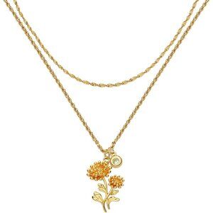 Birth Flower Necklaces for Women 18K Gold Plated Dainty Layered Birth Month Flow