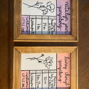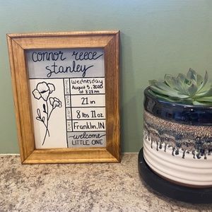 Name, birth date and time, length and weight, place of birth, and birth flower.