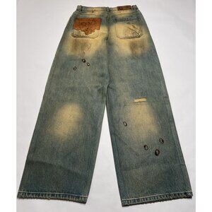 Birth of Royal Child Dirty-Washed Brushing Wax Baggy Denim in Blue
