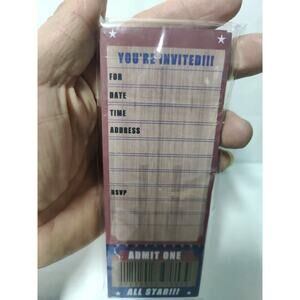 Get ready for a thrilling sports birthday party with these All Star Ticket invitations! Perfect for kids and adults, these flat cards feature a brown ticket design with a sports theme. The invitation height is 6 inches and includes the important aspects of Brand, Type, Character, Occasion, Color, Theme, Recipient, and Card Type.