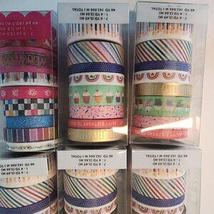 celebrate creativity with this vibrant washi tape lot featuring 6 themed boxes of Happy Birthday designs and 1 empowering Girl Power roll. Perfect for scrapbooking, journaling, gift wrapping, or party decor, this bundle offers a rainbow of patterns—from glittery stripes to festive cakes and empowering slogans.