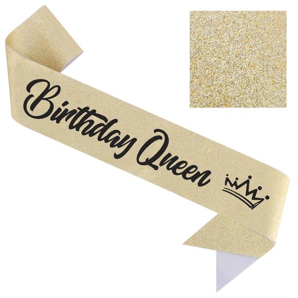 "Birthday Queen" Sash: Make your birthday truly unforgettable with this cool sash. It's perfect for sprucing up your 8th, 12th, 14th, 17th, 19th, 25th, 35th, 45th, 55th, 65th birthday or any other birthday celebrations.