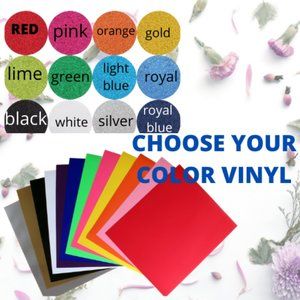 Select your print color and material (iron on glitter options or vinyl colors)