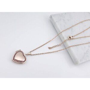 Features: Elegant love heart-shaped locket with cubic zirconia birthstones, perfect for holding a special photo or memory. Crafted from stainless steel with a shiny rose gold finish, it slots easily into any jewelry collection or gift box.