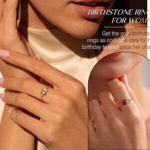 Birthstone Rings for Women Non Tarnish Gold Rings Birthday Gifts for Teen Girls