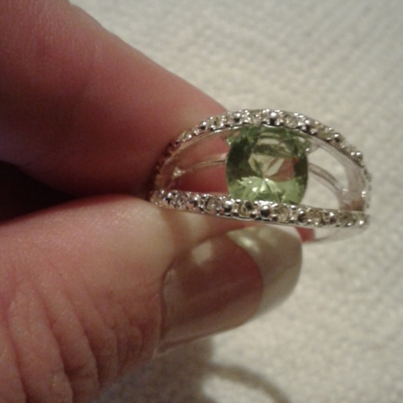 August birthstone ring with green ans white gems